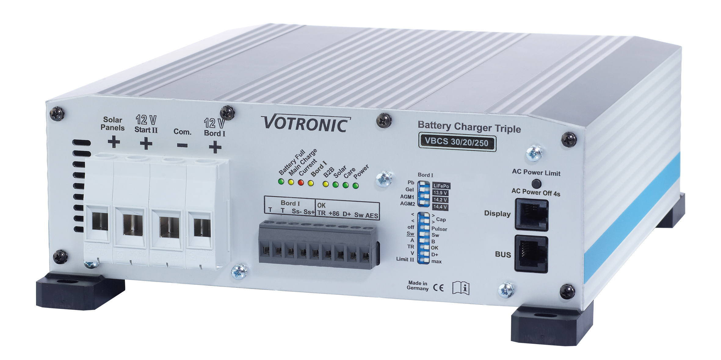 Wer ein Wohnmobil selbst ausbaut oder die Aufbauelektrik von Grund auf neu gestalten möchte, der ist mit einem Dreifachladegerät bestens beraten. Es vereint folgende drei Ladegeräte in einem Gerät und erspart einiges an Verdrahtungsaufwand: