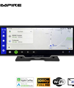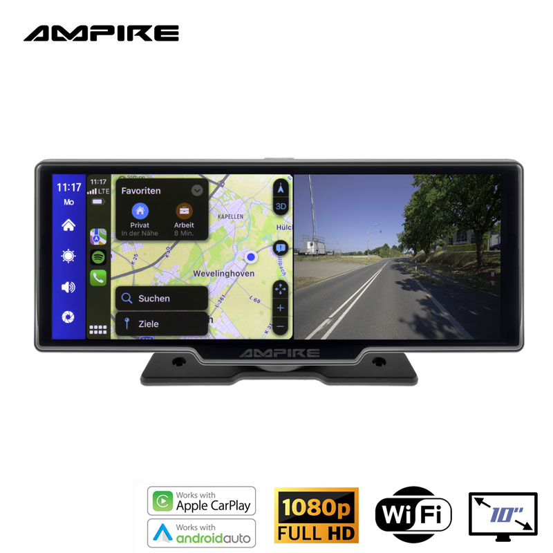 Bedient wird alles über die intelligente Sprachsteuerung Siri bzw. OK Google oder am 10″ Touchscreen Monitor, den Sie mit einem mitgelieferten Fußhalter sicher z.B. auf dem Armaturenbrett befestigen können.