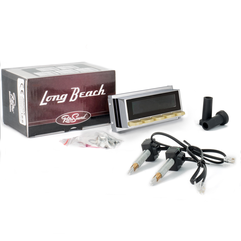 Das RetroSound Autoradio wird in zwei Komponenten bestellt und ausgeliefert. Dem Radiomodul „MOTOR“ und dem „FACE“, welches eine Displayeinheit mit Bedientasten hat und den beiden Reglern. Die Bedienknöpfe und Bedienringe befinden sich nicht im Lieferumfang und müssen individuell bestellt werden. Die Displayeinheit passt in die verschiedenen Frontblenden und Adapterrahmen von RetroSound.