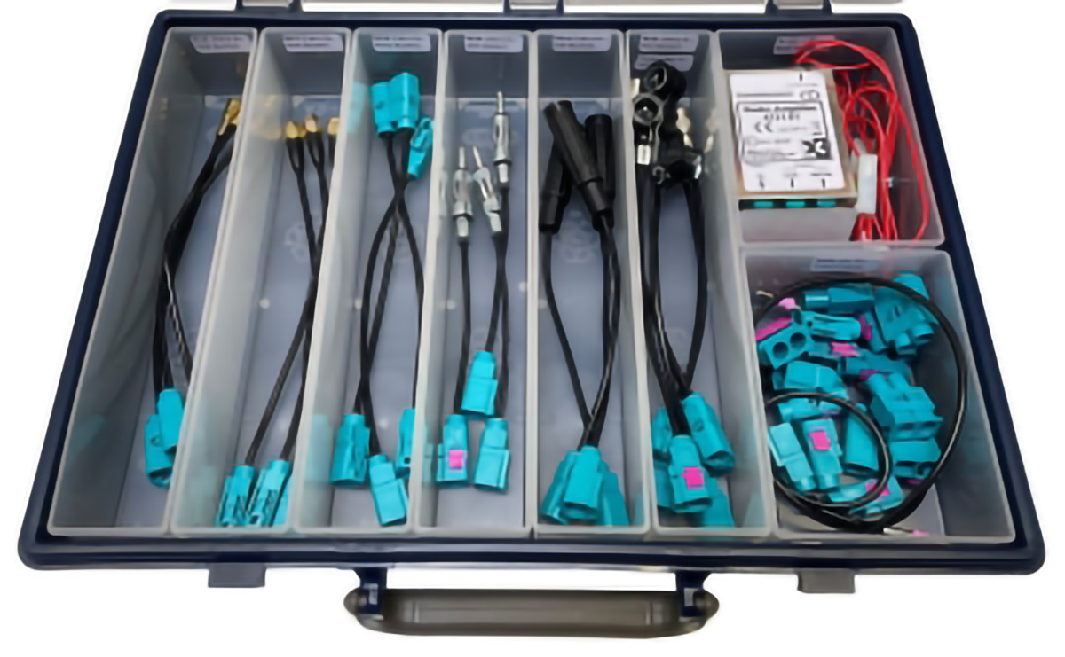 Mit diesem Sortimengskoffer können Sie nahezu in jedem Fahrzeug unseren Profi-DAB/FM Splitter einsetzen.