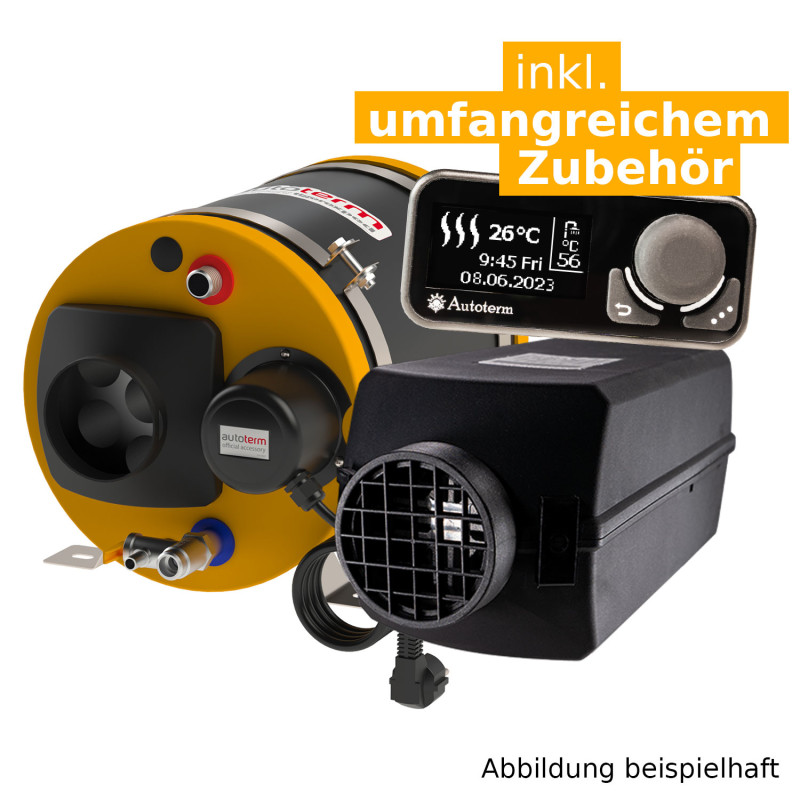 - Heizgerät(e) wie ausgewählt (mit 2 kW, 4 kW oder 2 × 2 kW Heizleistung für jeweils 12 oder 24 V Bordnetzspannung)